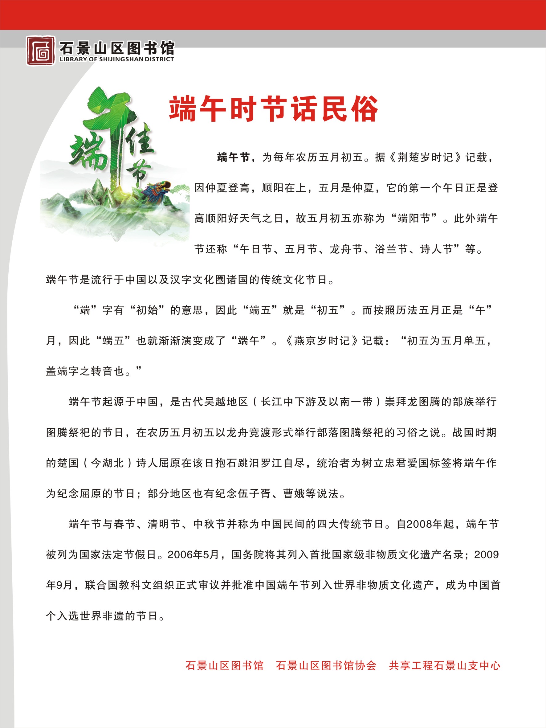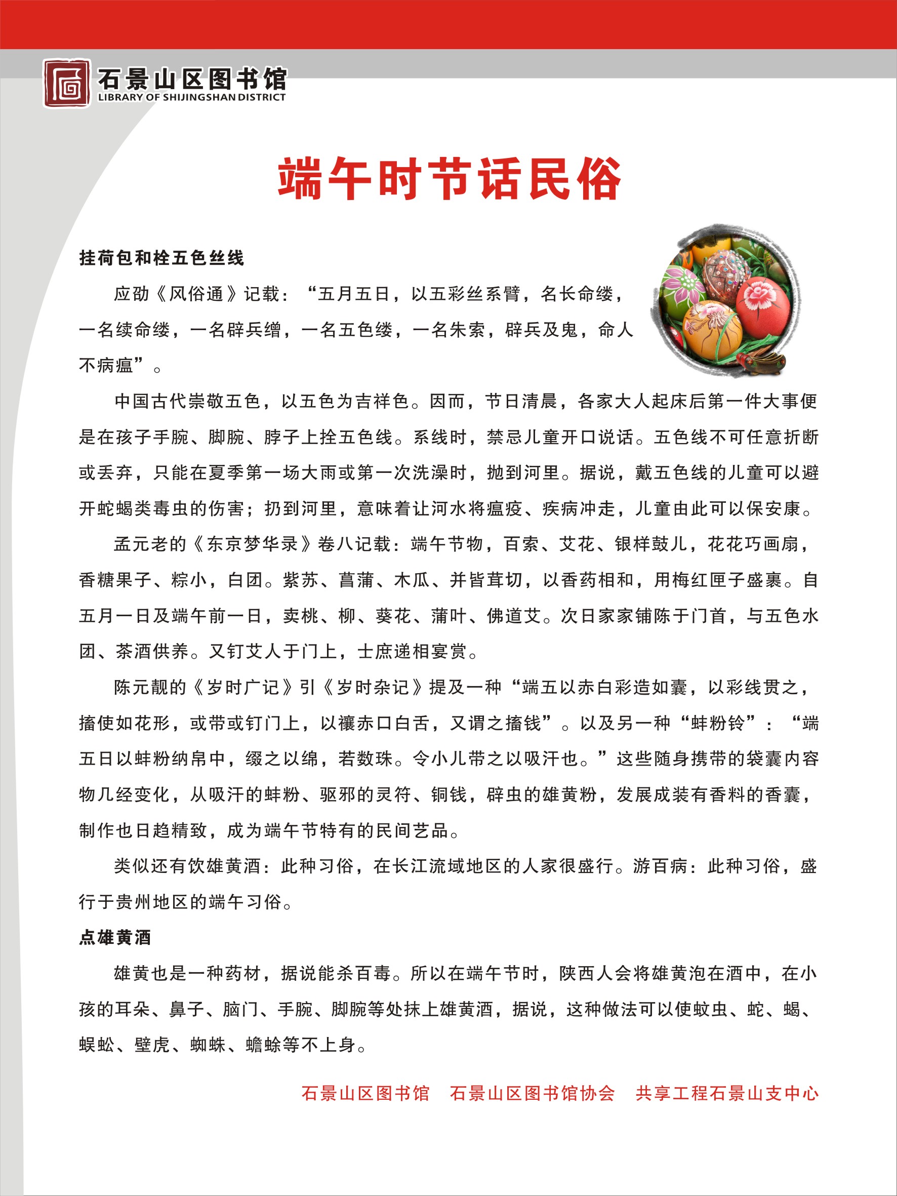首 页   >   资讯   >   网上展览   >  石景山区图书馆、端午节话民俗