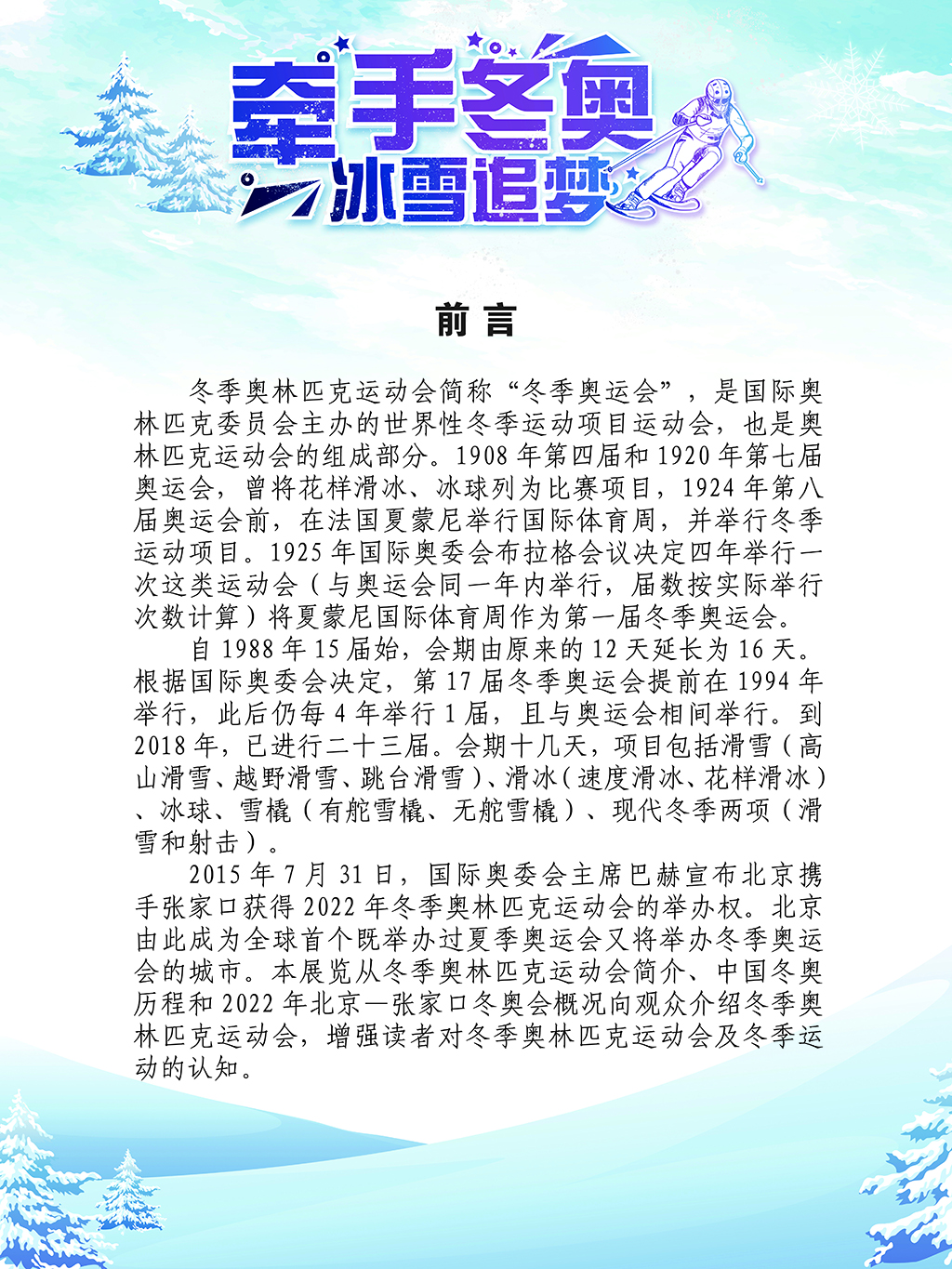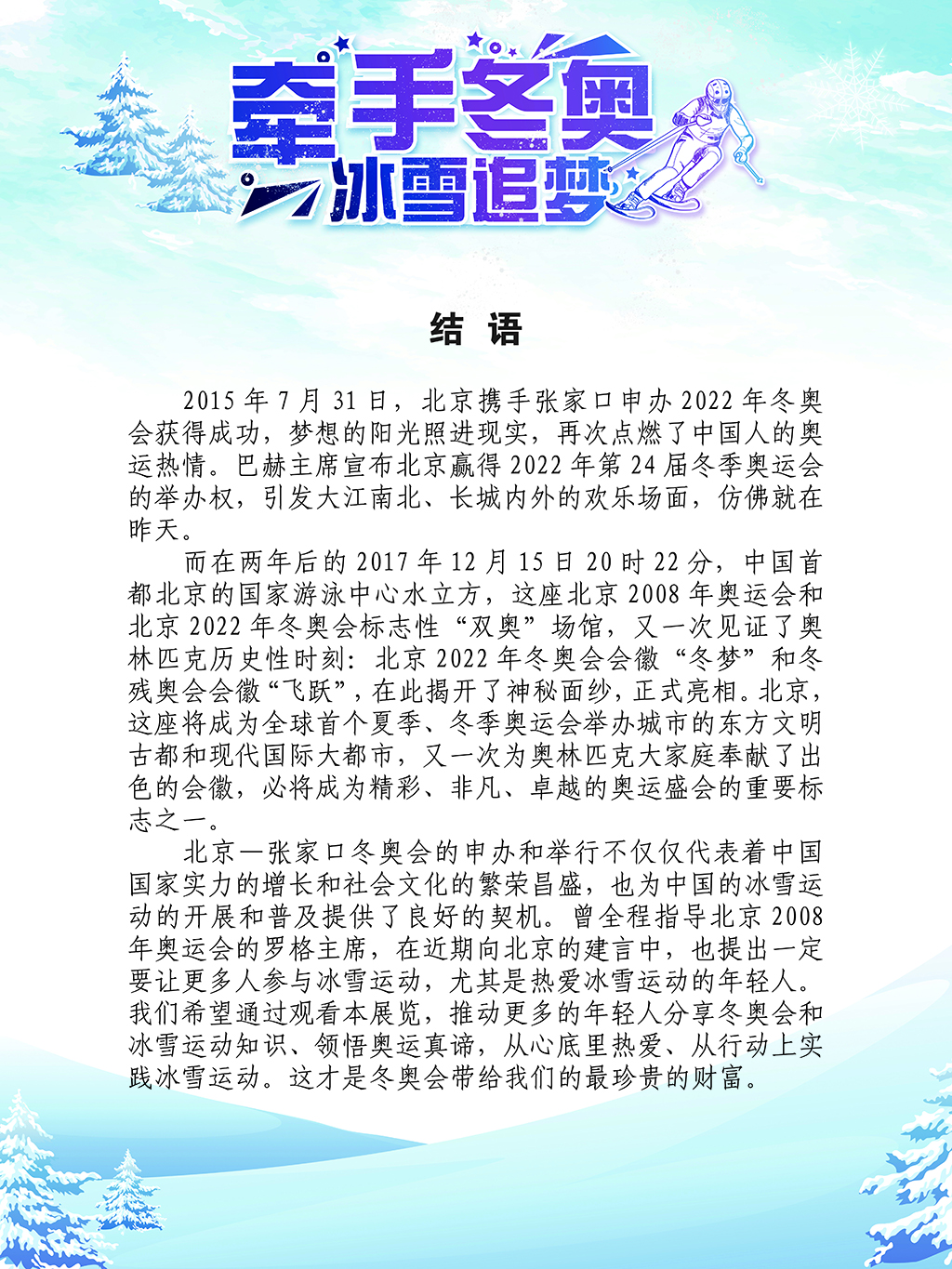 首 页   >   资讯   >   网上展览   >  “牵手奥运 冬奥追梦”冬奥主题展